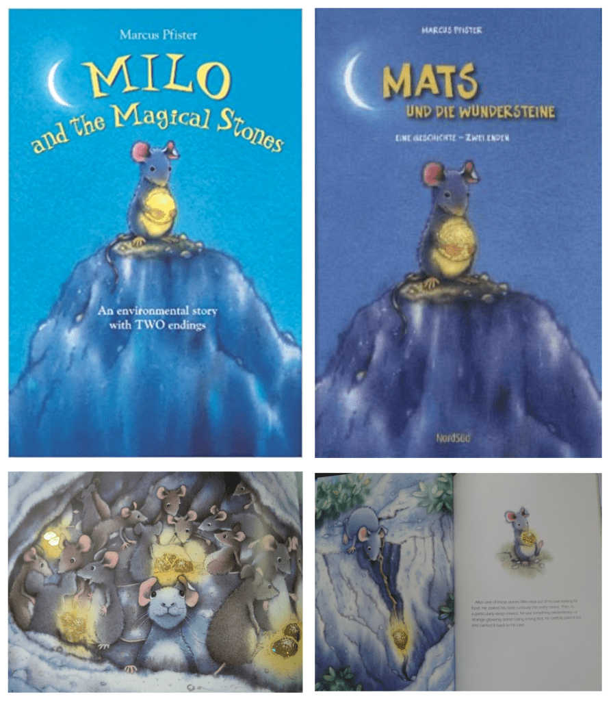 In this story a community of mice live on an island and enjoy the sun and warmth of summer, but spend the winter huddled in their caves dreaming of the summer sun. One day, Milo finds a strange glowing stone, which turns his cold, miserable cave into a warm and comforting home. Of course all the mice want stones for themselves, but one of the elders warns, “The stones belong to the island, you must give something in return.”