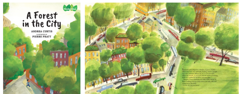 The first book in a new series by Groundwood Books called ThinkCities, this beautifully illustrated, narrative nonfiction examines an urban forest, from above and moving down through the levels of the city, underground and then back up again moving through a tree’s trunk, branches and leaves. The discussion ranges from how to maximise the growing conditions for trees and plants in an urban environment to how those same trees and plants benefit us emotionally as well as physically.
