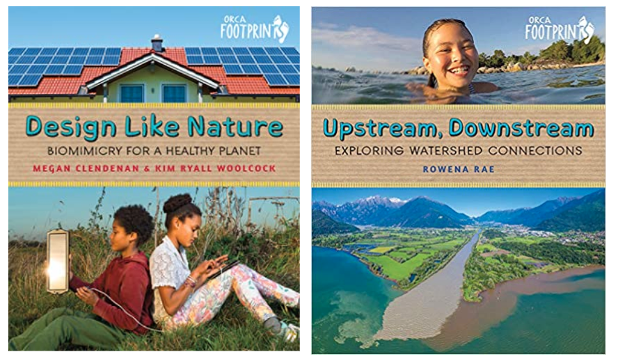 New books in the Orca Footprints Series! The collection already has 24 books out, with the 25th one Design Like Nature: Biomimicry for a Healthy Planet comes out TODAY (3/16/21!). The 26th one Upstream, Downstream is set to come out later in September. These books are great! Written by eight different Canadian women, this series puts many environmental issues in the spotlight. Some of these contribute directly to climate change, while others are issues that climate change directly impacts in return. The volumes cover deforestation, energy, waste, population growth, invasive species, sustainable food, bees, clean water, and more. Causes and solutions are discussed through interesting factoid boxes, colorful photographs, and many examples. I particularly like that they include many parts of the world in the books to get a more global view of problems and what action is taking place. This series even comes with a teacher’s guide