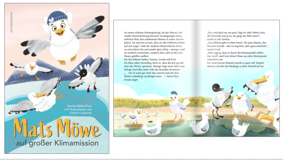 Mats Möwe auf grosser Klimamission by Dr. Denise Müller-Dum and illustrated by Kathrin Lauckner (2020). / Germany / Available in German only