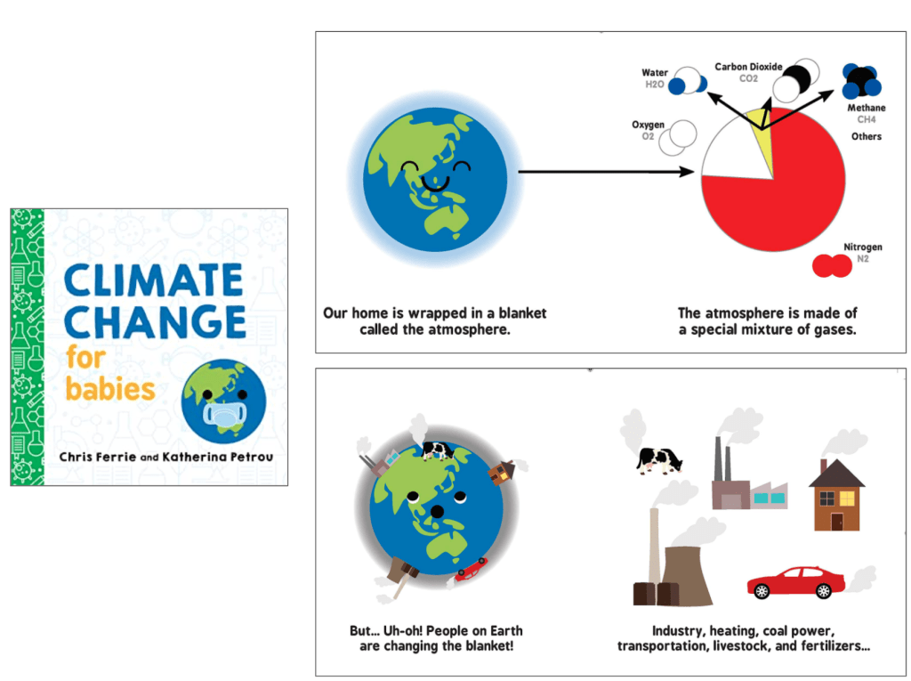 Chris Ferrie is known for his Baby University books, which are board books explaining very complex topics in very simple language, e.g., Quantum Computing for Babies and Bayesian Probability for Babies, which even secondary school libraries should own. Read this August 2020 Medium post where he explains the background to this latest one on climate change.