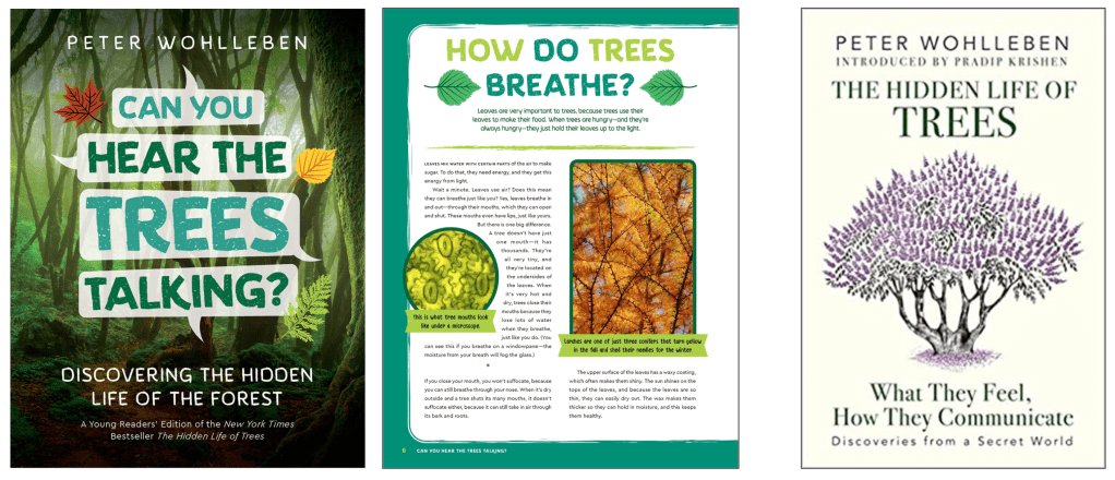 This is a young reader’s edition of the popular The Hidden Life of Trees: What They Feel, How They Communicate- Discoveries from a Secret World (2015) by Peter Wohlleben, who has been leading educational tours in Germany’s Eifel Mountains for over twenty years.