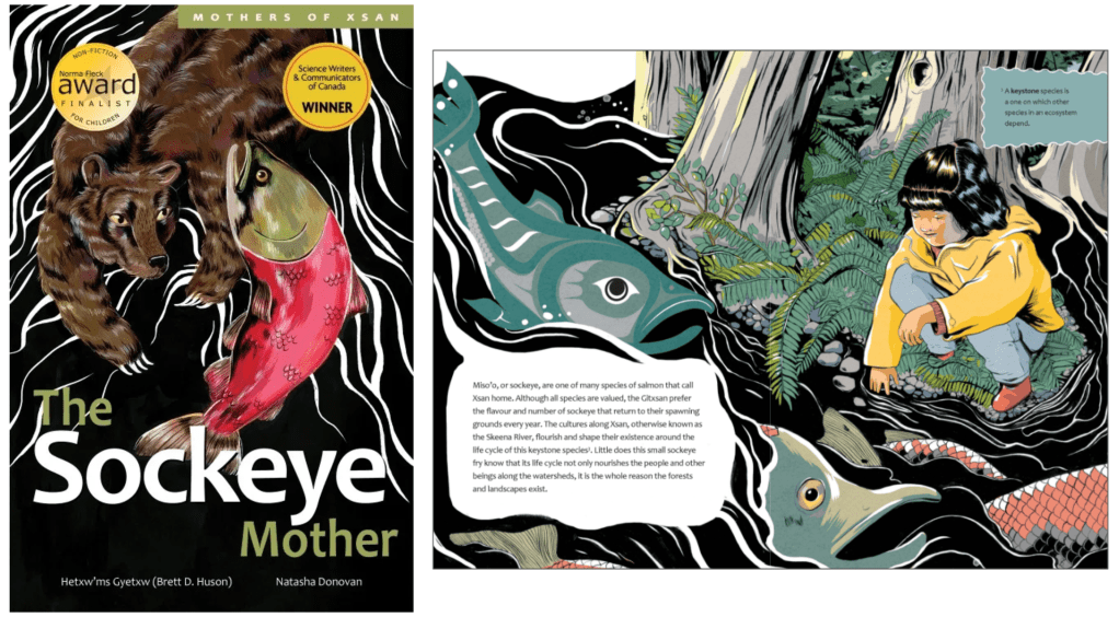 The author has published a pronunciation guide for Gitsxan words appearing in “The Sockeye Mother”, and you can learn more about the conservation efforts for the Sockeye Salmon on the NOAA fisheries species directory.