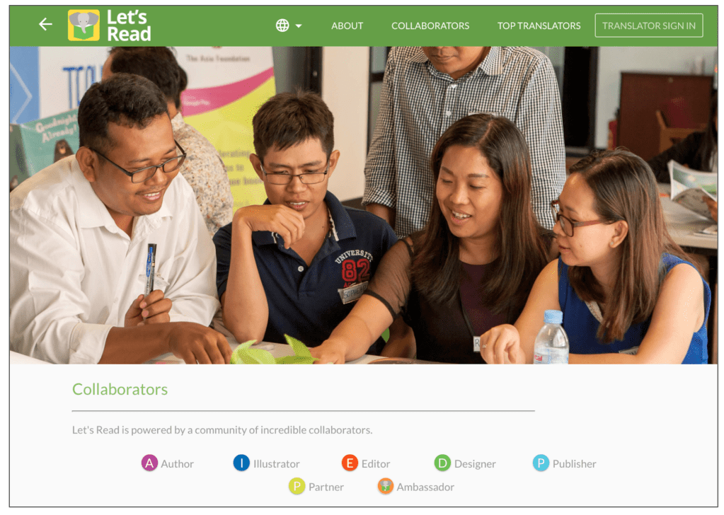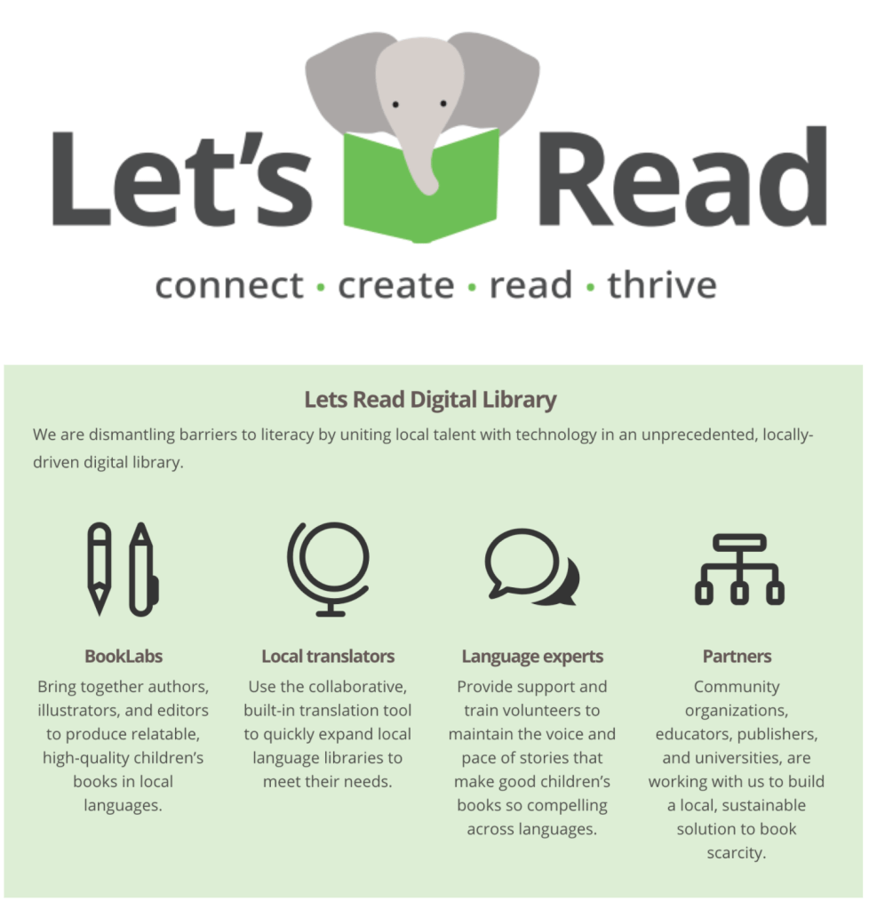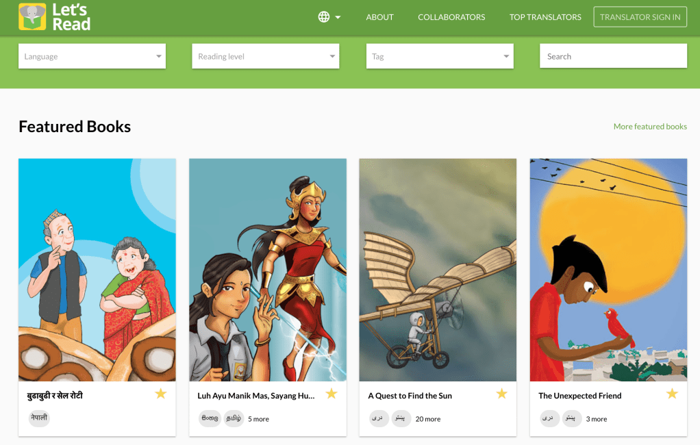 - Partnerships: sharing stories other organizations have created. For example, on the Let’s Read platform, you can find Storyweaver books, a similar free digital reading platform for children produced by the non-profit Pratham Books in India (previously highlighted in our blog posts for both SDG 8 and SDG 13).