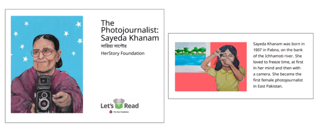Here is an example of a book produced by a partner organization, HerStory Foundation in Bangladesh.