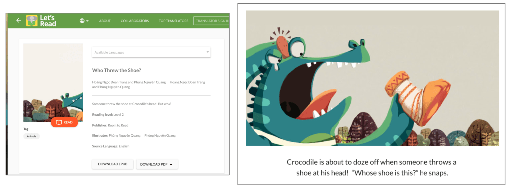 Their impact and reach is impressive — 20 million children affected so far, with a goal of reaching 40 million children by 2025, in 16 countries and 36 languages. Like Pratham Books, Room to Read produces both print and digital editions of their stories. The ebooks are free — and the print books are of decent quality and inexpensively priced.