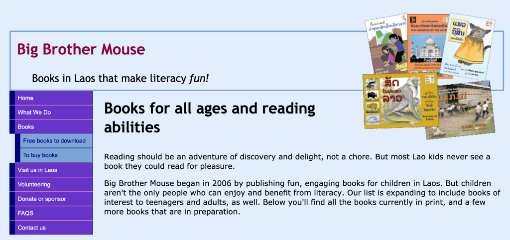 There are smaller NGOs out there working to produce books locally, such as Big Brother Mouse in Laos.