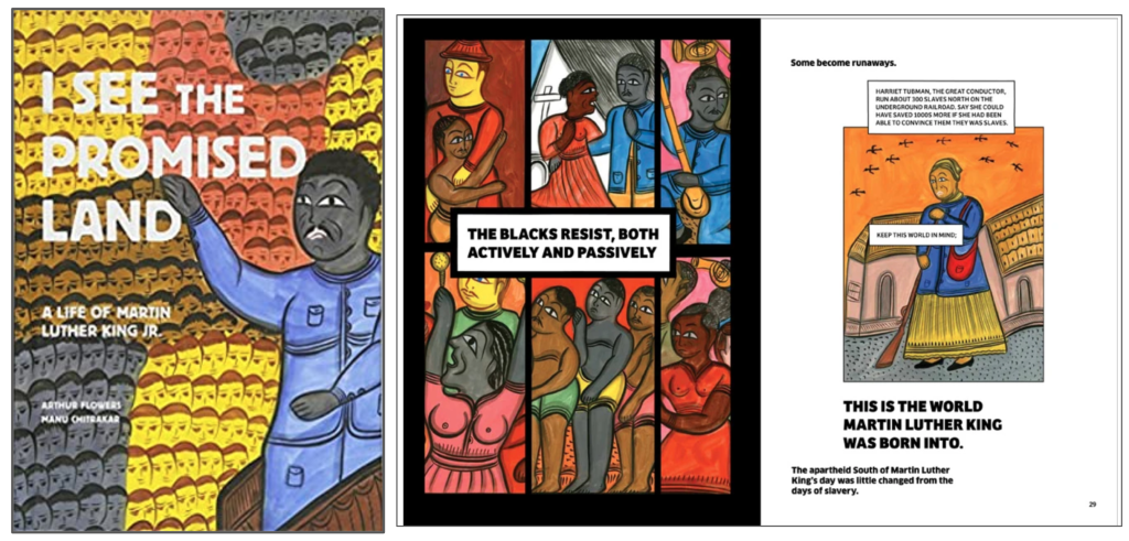 This graphic novel version of the life of Martin Luther King, Jr. and the Civil Rights Movement is an exciting dialogue between two very different storytelling traditions. Arthur Flowers – African American writer and griot – tells the story in lyrical prose, while the text is illustrated by Manu Chitrakar, traditional Patua scroll artist from Bengal, India.