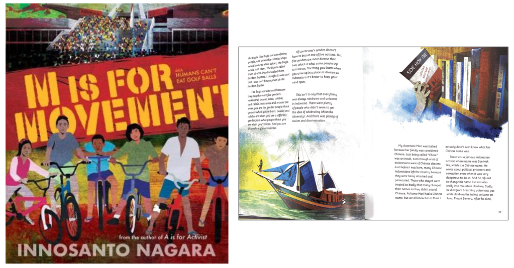 This is a lushly illustrated long form picture book which tells the tale of the author’s history with activism weaving in themes of equality, colonialism, education, poverty. He also manages to bring in movements from all around the world, although the book itself is set in Indonesia. (SDG 1; 2; 3; 4; 5; 6; 8; 9; 11; 12; 15; 16)