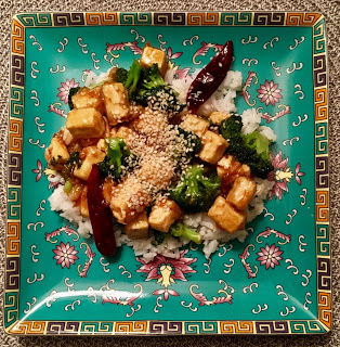 I had no problem finding a vegan Chinese recipe on the Internet. In fact, there are dozens. I chose a vegan version of the popular General Tso’s, which is usually made with chicken. The recipe I found on ohmyveggies.com is for General Tso’s (Not) Chicken Bowls. I’m not a big fan of seitan, so I substituted tofu, and I left off the green onions. It was so good that I expect to make it again one of these days.