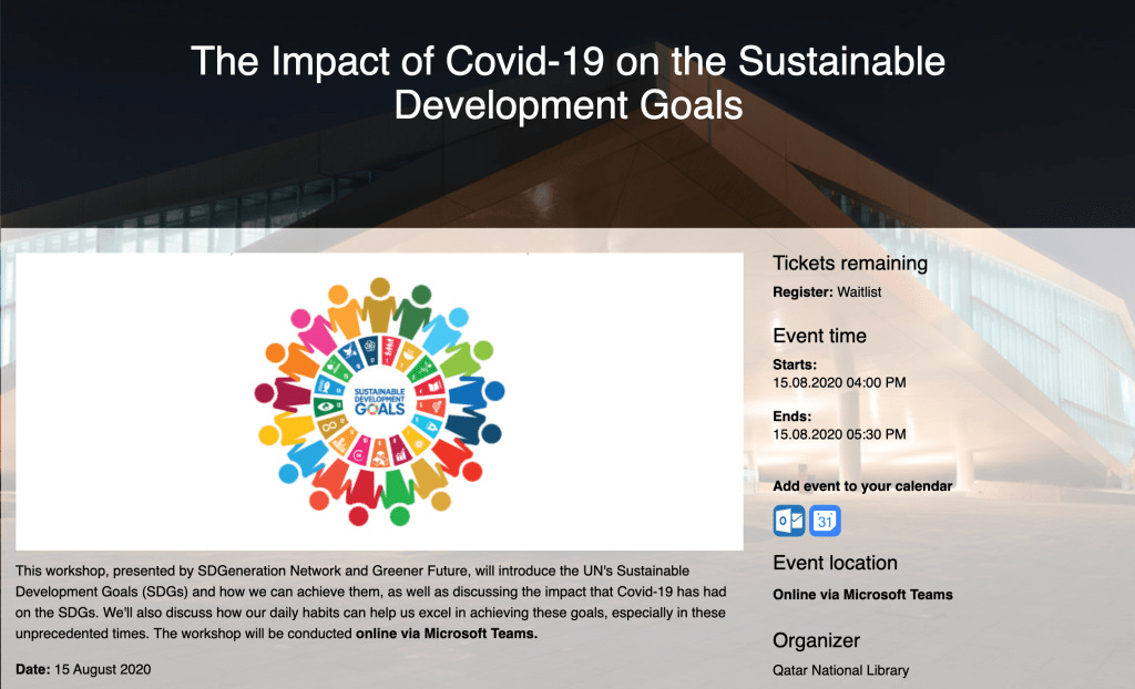 As a Senior Information Services Librarian at the Children and Young Adults Department at QNL, at the beginning of 2020 I approached the Head of Young Adults, Ahmed Al-Malki, and advocated that we should set an objective, focusing on the development of SDGs among the young community in Qatar. Libraries are key institutions for achieving the SDGs. Libraries around the world offer a wide range of services and programs that promote the achievement of every goal.