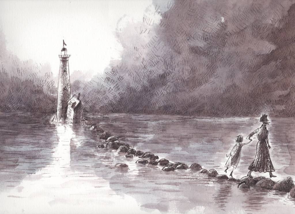 An approaching storm seals her fate, because of course the storm hits the shore with a vengeance and shatters all hope that her biggest mistake yet, her inability to remember to get more matches, will pass unnoticed. A ship smashes upon the rocks near the dark lighthouse, and here is where Lampie’s tale truly begins, a dark fairytale where a motherless little girl, harnessed to a father who is a wreck himself, a tyrannical man who has lost all light in his life and who unfairly, relentlessly punishes Lampie for existing when her mother does not, goes on a unnerving quest into the Female Gothic landscape.