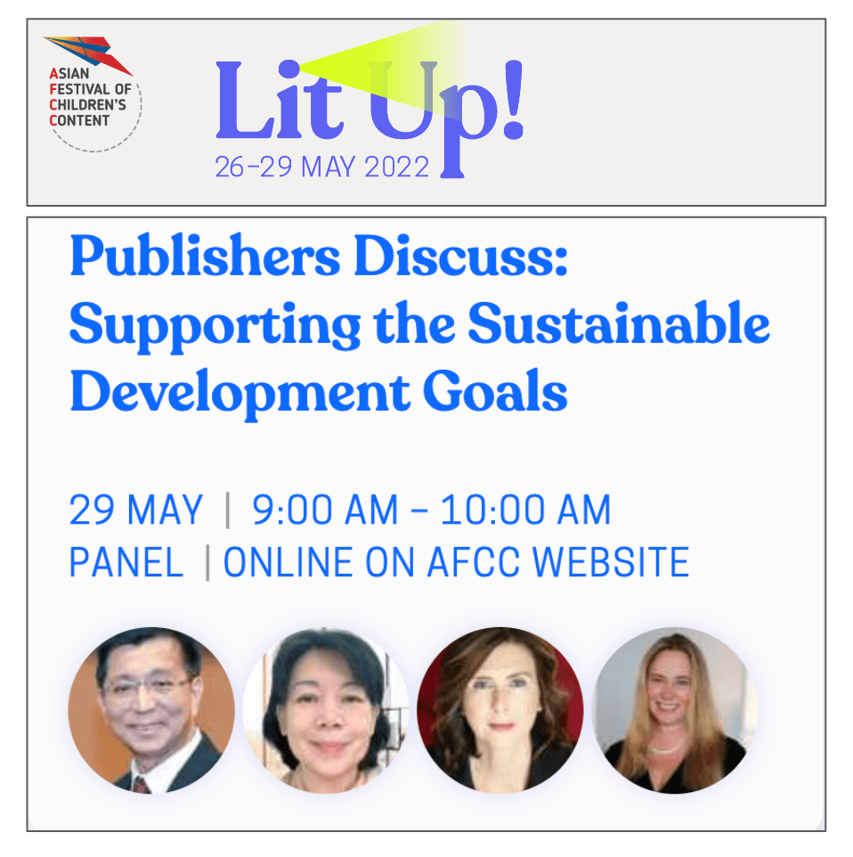 At the May 2022 Asian Festival of Children’s Content (AFCC) in Singapore, there was a panel with publishers from different countries discussing how they supported the UN Sustainable Development Goals (SDGs), both in practical terms of how they ran their businesses and in terms of the titles they publish.