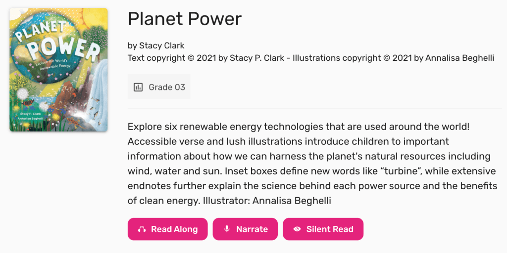 • The ability for students to narrate the book themselves — for them to listen back to or to share