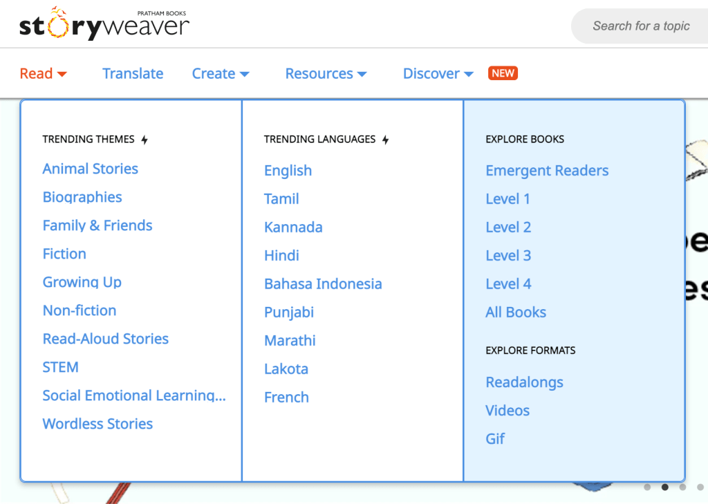 Pratham Books wants to support literacy in every language imaginable. While that would be a huge endeavor just in India alone (with some estimates placing the country’s count at over 700 languages!), they have set out to include languages from around the world which makes it an even more daunting task. Pratham Books publishes its books in about 25 languages, but knows this only reaches so many children. Therefore, they have made translation available on Storyweaver for every book in any language!