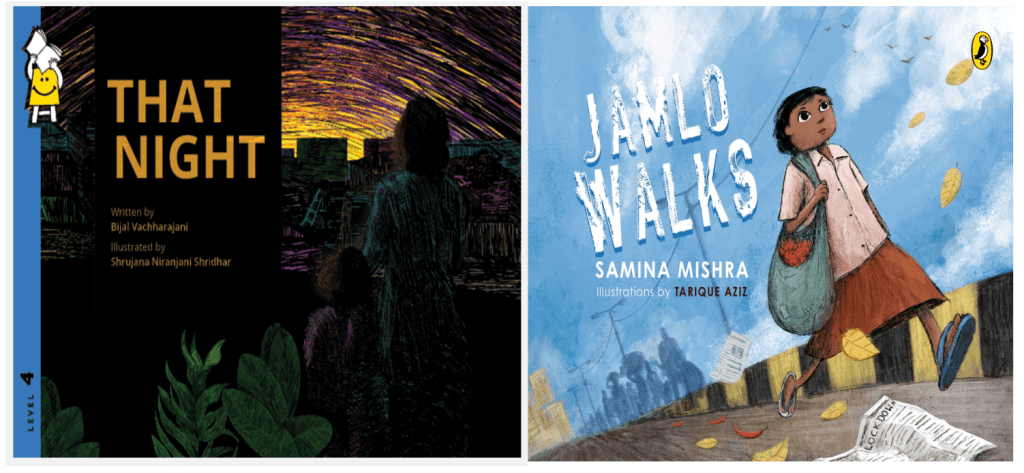 Jamlo Walks is a stunning picture book that draws on a real incident, of a child carrying the chillis she earned harvesting to her home village far away. This story explores the trials of a young migrant worker during the Covid-19 lockdown in India, who, like so many others, is forced to make her way home on foot. The reader goes along with Jamlo on her journey, which is interspersed with glimpses into the lives of middle-class urban children, who do not face the same challenges. A simple, yet powerful narrative that deals with themes of justice, inequality and humanity.