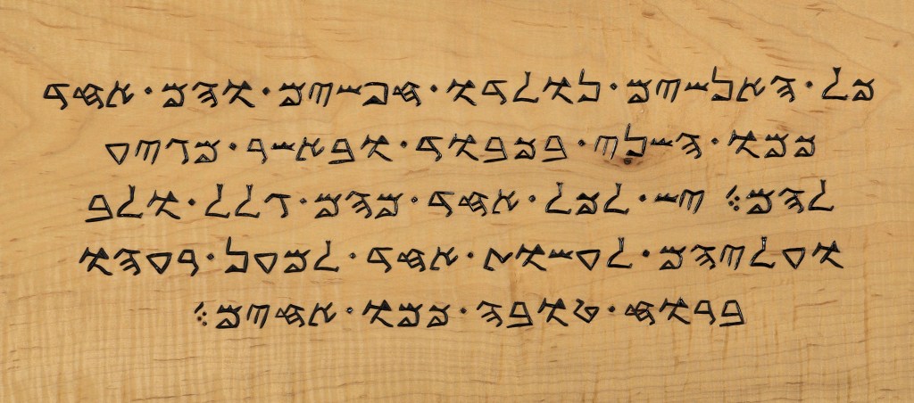 Article One of the Universal Declaration of Human Rights in Samaritan. Carving and photo by the author.