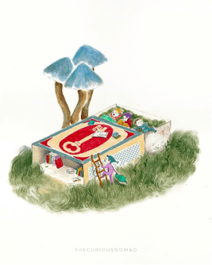 As it so happens, one afternoon I was stuck in what you might call an Instagram doom scrolling paralysis when a post appeared on my feed that instantly gained my attention. Upon clicking on the profile, I was introduced to an Emirati illustrator’s profile with the pen name “The Curious Nomad”, and I was floored with awe at the beautiful illustrations, both digital and real life that I saw.