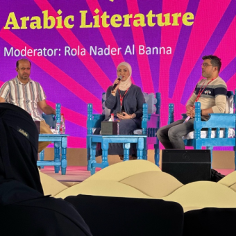 Wdad shared her own insights about some of the things that she found particularly enriching from attending the event: “The Festival of Literature unfolded with a vibrant tapestry of memorable moments. Under the expansive sky and perfect weather, attendees reveled in the enchanting ambiance of the outdoor venue, lending a magical touch to the event. What truly made the gathering extraordinary was its kaleidoscope of cultures, as people from all corners of the globe converged in one place, igniting conversations that traversed borders and boundaries. Despite the seamless organization, a hint of drama emerged when one of the moderators, lost in the world of her phone, failed to captivate and engage the audience – and the speaker himself – leaving a gap in the otherwise flawless proceedings. Amidst this whirlwind, the arrival of literary luminary Saud Alsanousi electrified the atmosphere. Meeting him was akin to stepping into the pages of his books, and his signature adorning my cherished copy of” فئران امي حصة” became a treasured memento of an unforgettable day at the festival.”