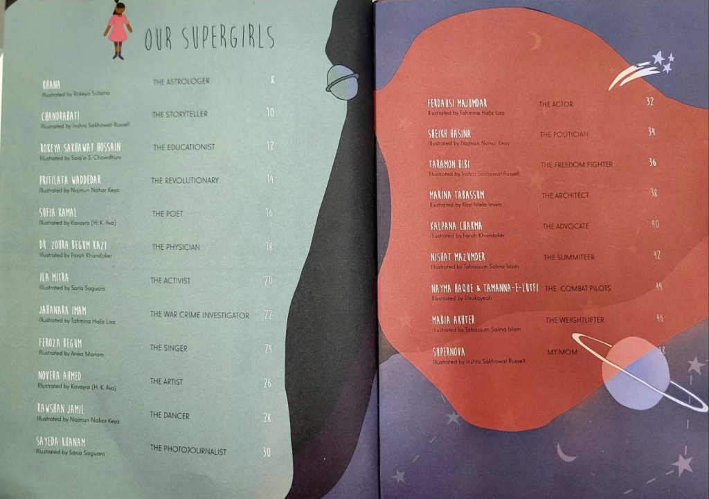 Art So Cool, It’ll Make Your Eyes Pop: Every page explodes with vibrant illustrations by a team of Bangladeshi artists. Imagine a visual party that captures the spirit of these Supergirls and the beauty of Bangladesh.