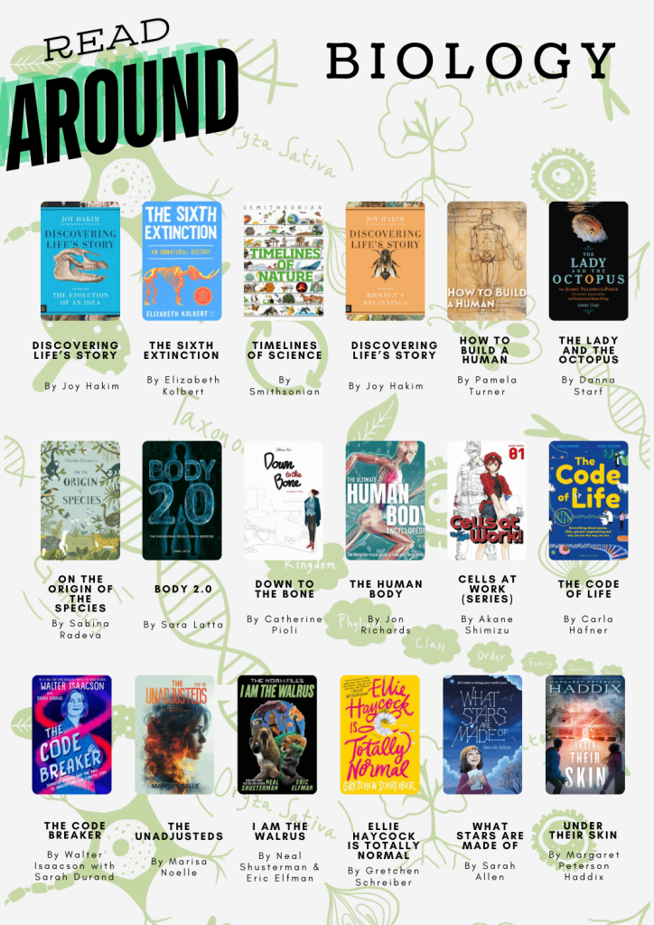 In Biology I just love the “Cells at Work” manga series – which now come in “Baby” and “Code Black” to cater for the lower and higher ends of readers. At another point I’ll make a poster specifically for genetics and DNA as there are a bunch of memoirs and fiction stories about people with genetic disorders.