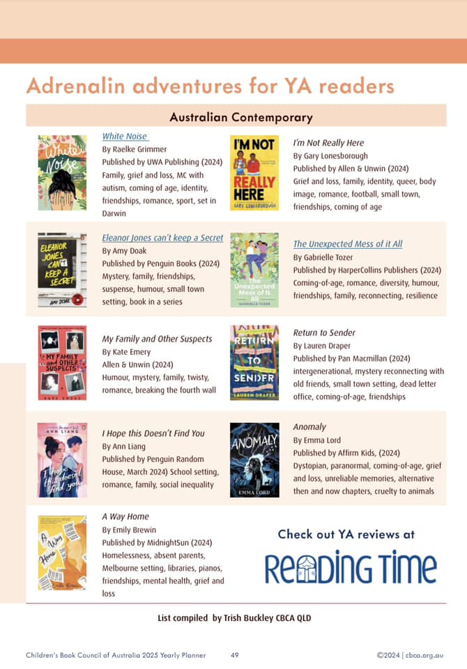 Thanks to Julie Muir and Trish Buckley / CBCA for sharing their posters of reading recommendations. Check out more YA reviews at Reading Time