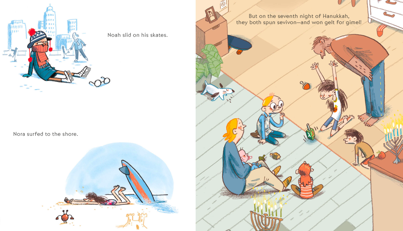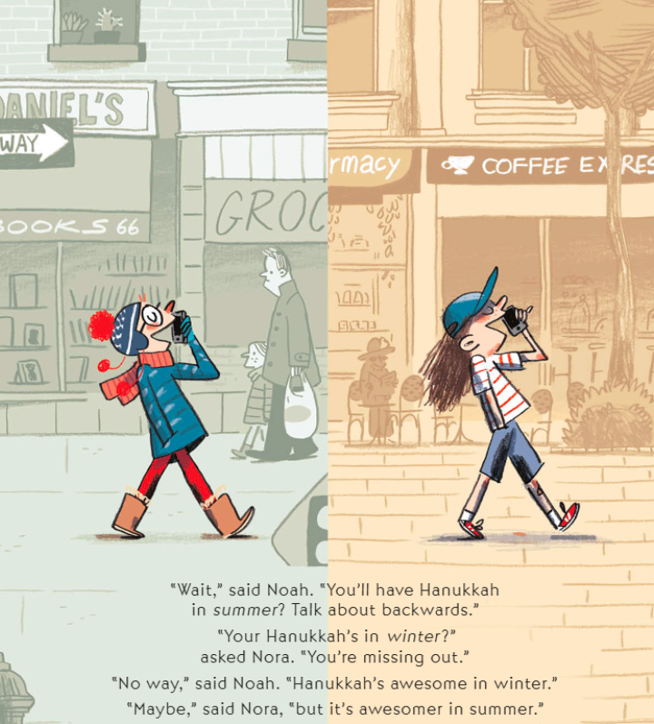 I had fun reading this book in December to my students in Brazil. With Hanukkah Upside Down, we discussed cultural diversity, seasonal differences, and perspectives. Through the experiences of cousins Noah in New York and Nora in New Zealand, the story highlights how geography shapes holiday traditions, with winter and summer Hanukkah celebrations offering a unique contrast. Their conversations encourage reflection on perspective and empathy, while Omer Hoffmann’s adorable illustrations bring these diverse celebrations to life. This engaging story fosters appreciation for global traditions and the impact of nature on human experiences.