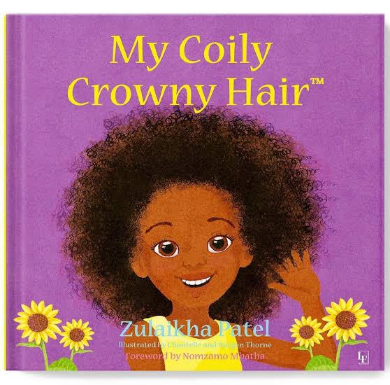 Two books by Zulaikha Patel deal with the issue of racism and hair. My Coily Crowny Hair celebrates her magnificent curly hair that “grows up towards the sun like a summer sunflower.” It is a powerful, positive message that she receives from her mother who washes it tenderly, combs it with her fingers and braids it so she looks like a beautiful young queen.