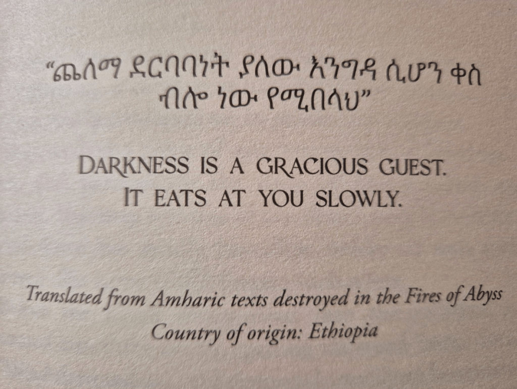 Girma also uses her immigrant background to deftly illustrate the painful reality of many young people who lose access to and mastery of their first languages by leaving their birth cultures at young ages. She realistically describes the ways in which forgetting Amharic disadvantages Kidan in reclaiming her family’s history and her sense of “home.” Having left Ethiopia for Australia as a young teen herself, Girma brings her own experience as a language learner to this aspect of Kidan’s character development and firmly grounds Kidan’s story in the real world. Language loss adds Gothic suspense to Girma’s exploration of draniac society, as Kidan is often truly in the dark with the conversations swirling around her. Punctuating the text at strategic moments, Kidan’s struggles to translate the messages, voices, and contexts of her new world into the next actions she needs to take to find her sister and unravel the mysteries she is confronted with at Uxlay adds a layer of existential dread. Will she understand what is really going on when she is so often linguistically and metaphorically in the dark, lost in translation?
