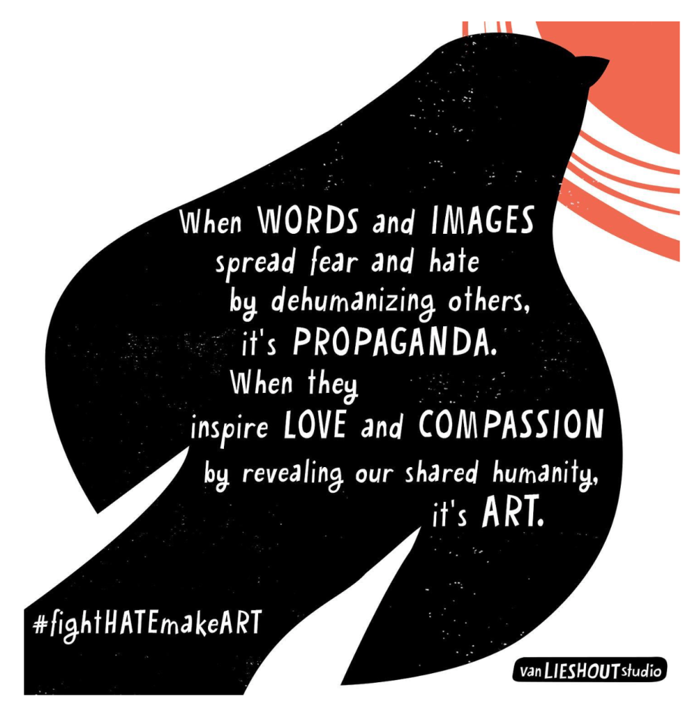 You’ve talked about how the mantra “Fight hate. Make art” distills the heart of your story. How did you arrive at that phrase, and why did it feel right not only for your characters, but also as a message to your readers. especially the young ones just beginning to understand the power of their voices and actions?