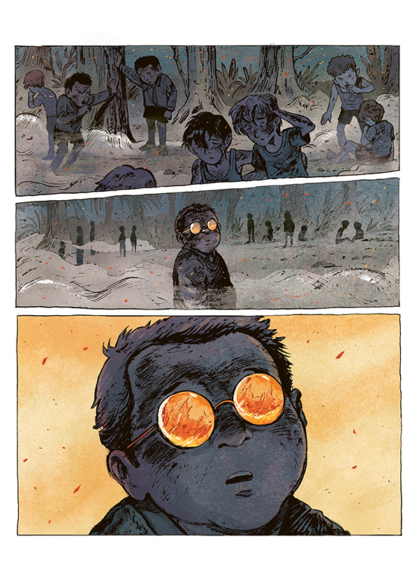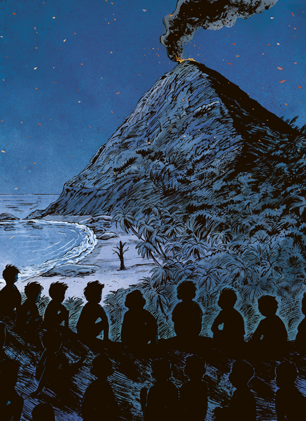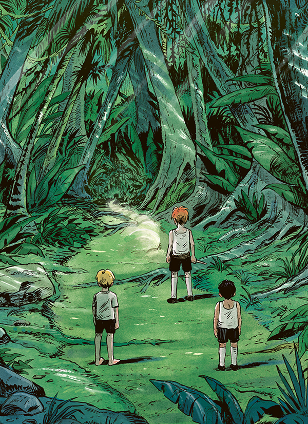 “One question returns to me every so often: when do the rules of our carefully crafted civilization end, and was it really there in the first place? There’s no book in the world, I think, that investigates these questions as masterfully as Lord of the Flies” – De Jongh, “Note from the Artist” in Lord of the Flies: The Graphic Novel (2024).