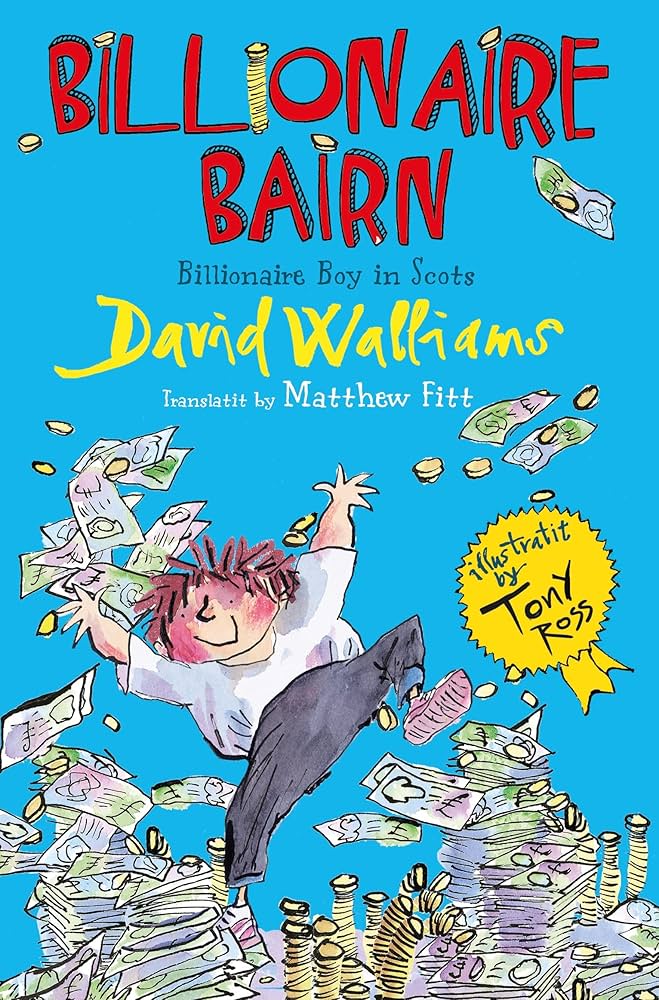 Billionaire Bairn: Billionaire Boy in Scots (2010), written by David Walliams, illustrated by Tony Ross, translated by Matthew Fitt / Billionaire Boy (2010), written by David Walliams, illustrated by Tony Ross
