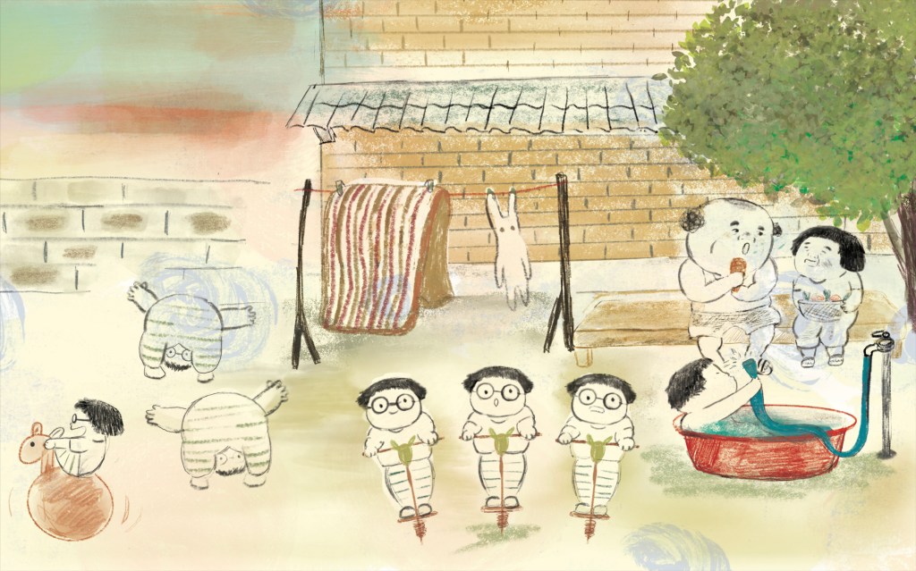 “Two squares for Pee, Three for Poop” is grandmother’s house rule to be frugal with toilet paper, but it turns into an opportunity for grandfather to crack jokes and teach his granddaughter a catchy tune. The “bar ladies,” shunned by many neighbors as bad influences, are instead welcomed into Mr. Go and Ms. Kim’s house with cheap rent—as Korean War orphans, they know what it’s like “not having a home to go back to,” so they try their best to carve out a place of warmth for others.