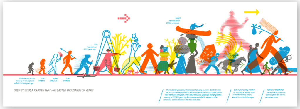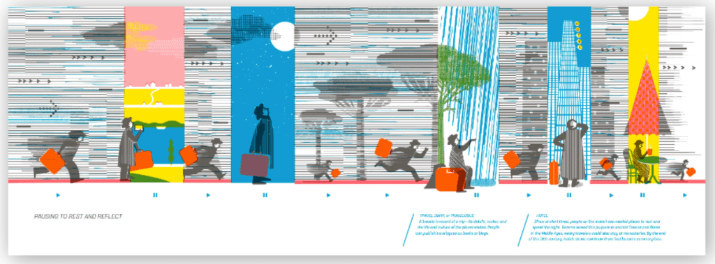 History and geography are interwoven with such diverse phenomena as brachiation, military campaigns, immigration, refugees, jet lag, motility, travel diaries, tourism, pilgrimages, the unknown universe of space, time travel, and the wonders of the world.
