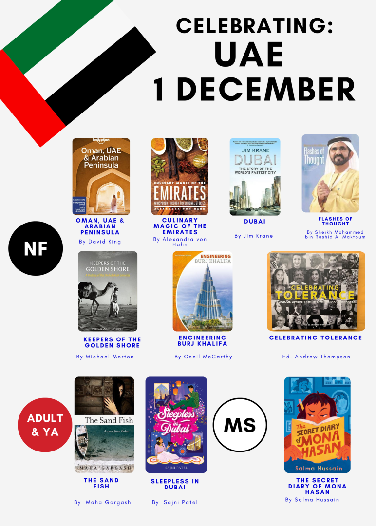 Welcome to December Display month where I've been invited to showcase some poster and display ideas for libraries and library promotions. Many of these designs are inspired by the very active librarian communities that I am a part of, and as Austin Kleon says, "Steal Like an Artist". One of the things I aspire to … Continue reading #DecDisplays – UAE National Day