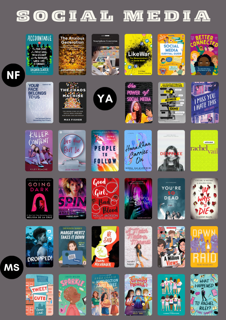 Kind of following on the post about teens yesterday, here is a poster of nonfiction and fiction books around social media, one of the obsessions of most (young) people today. Our G8 social studies class looked into social media as part of their identity unit, and one of my displays this year was fiction and … Continue reading #DecDisplays – Social Media